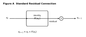 这件事的关键在于它把恒等映射(identity mapping)塞进了网络:哪怕 F 学得一塌糊涂,x 这条直通路径也能把信号和梯度比较完整地送到更深处,从而让几百上千层不至于“越算越跑偏”。mHC 论文在引言里也把这点讲得很直白:残差的稳定性,来自恒等映射跨层累积时的结构性保障。arXiv